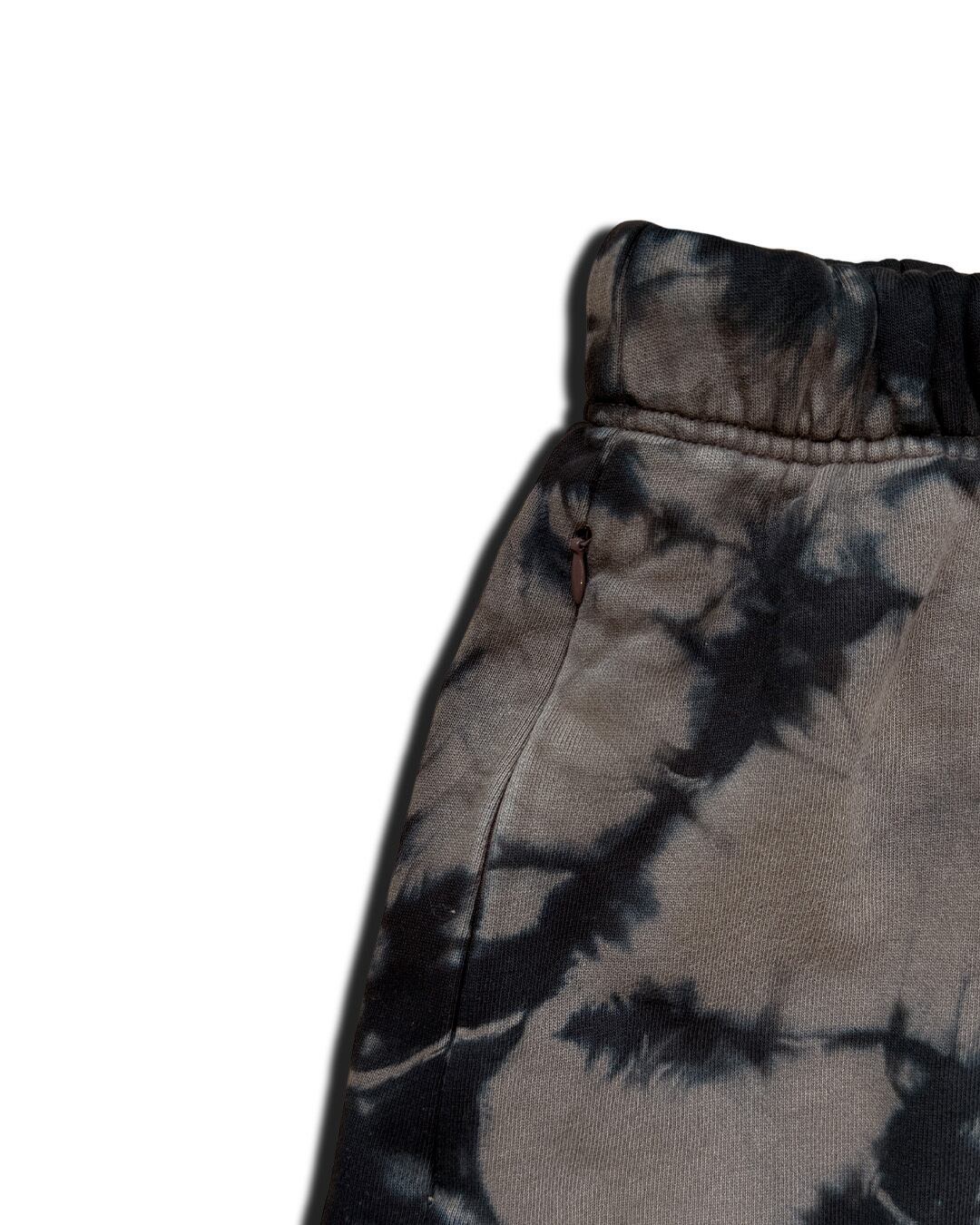 くすんだ茶色と黒のタイダイ柄に染色をしたショートパンツ。