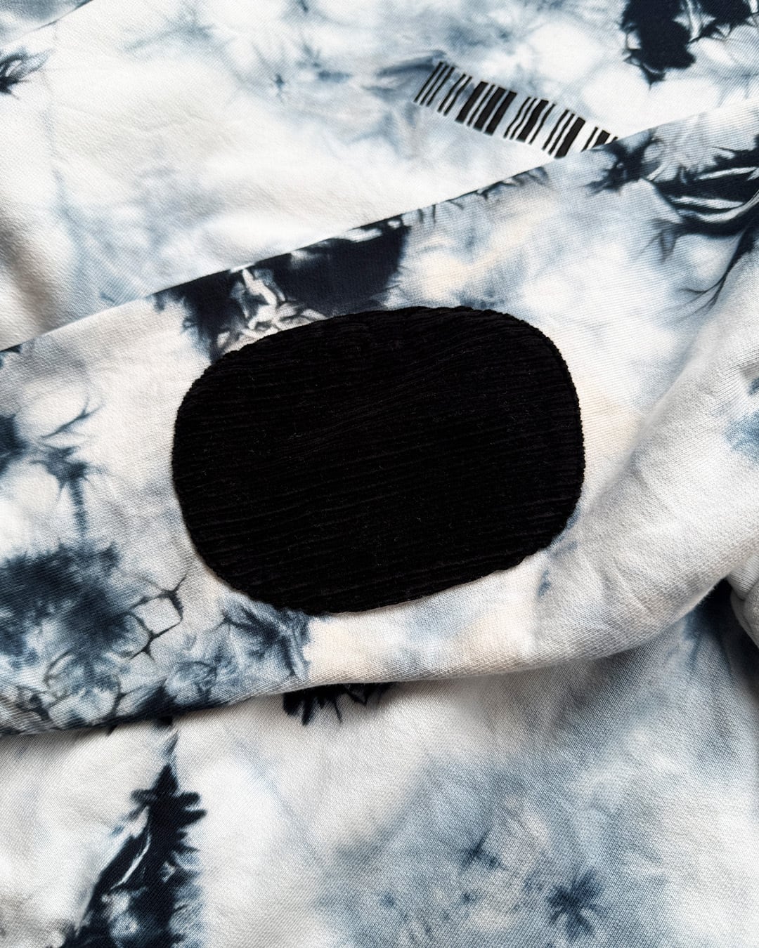 全体を黒と青味がかったグレーのタイダイ柄に染色。