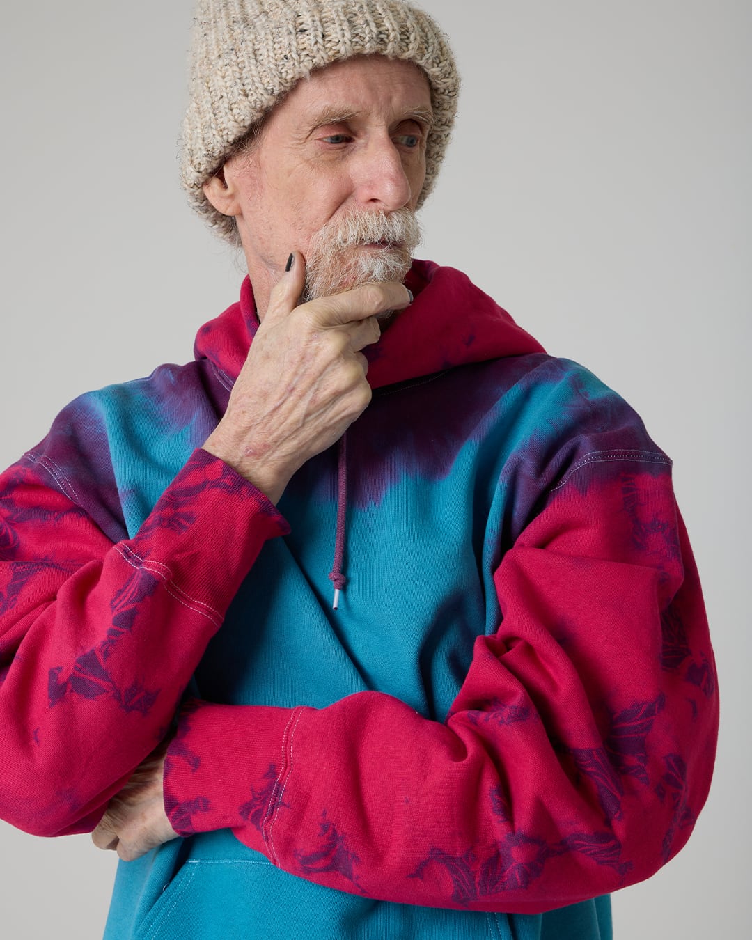 ・1点1点丁寧に手染めにて染色しているため、全てのアイテムの柄が異なります(色合いも若干異なる場合がございます)。手染めならではの世界に1着の質感をお楽しみださい。