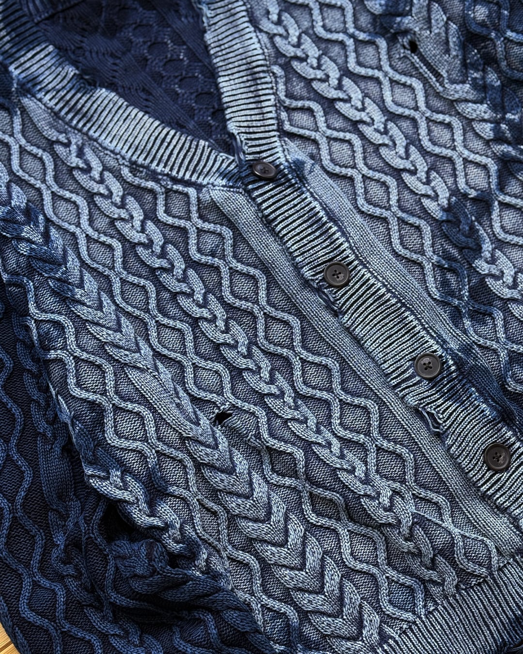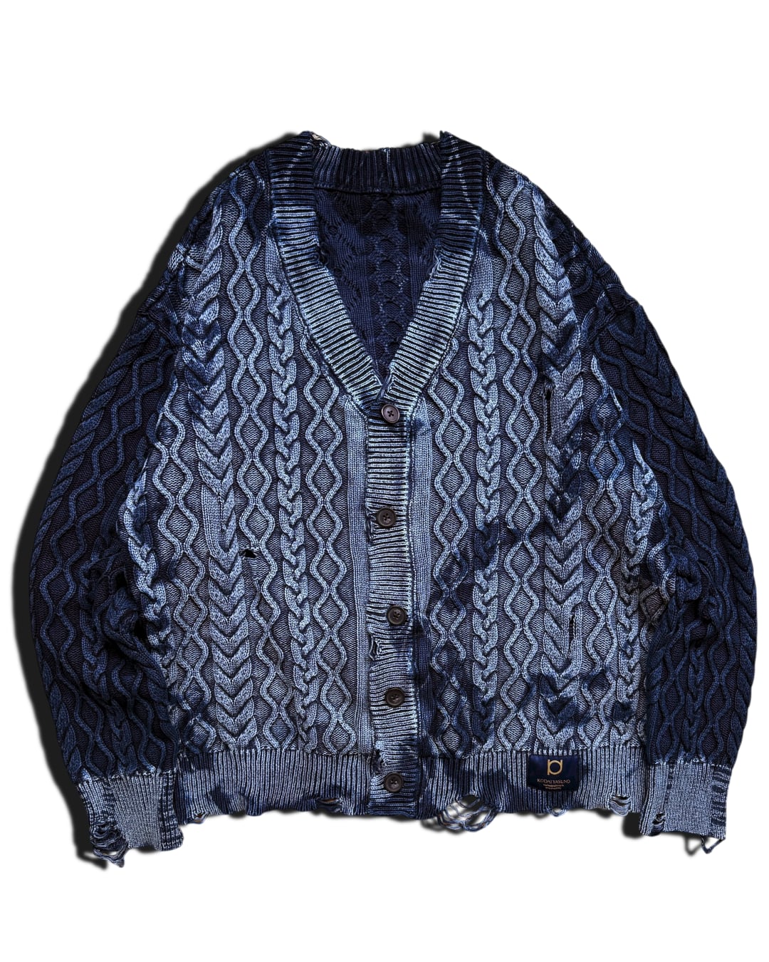 【数量限定販売】藍染めダメージタイダイニットカーディガン 彫刻