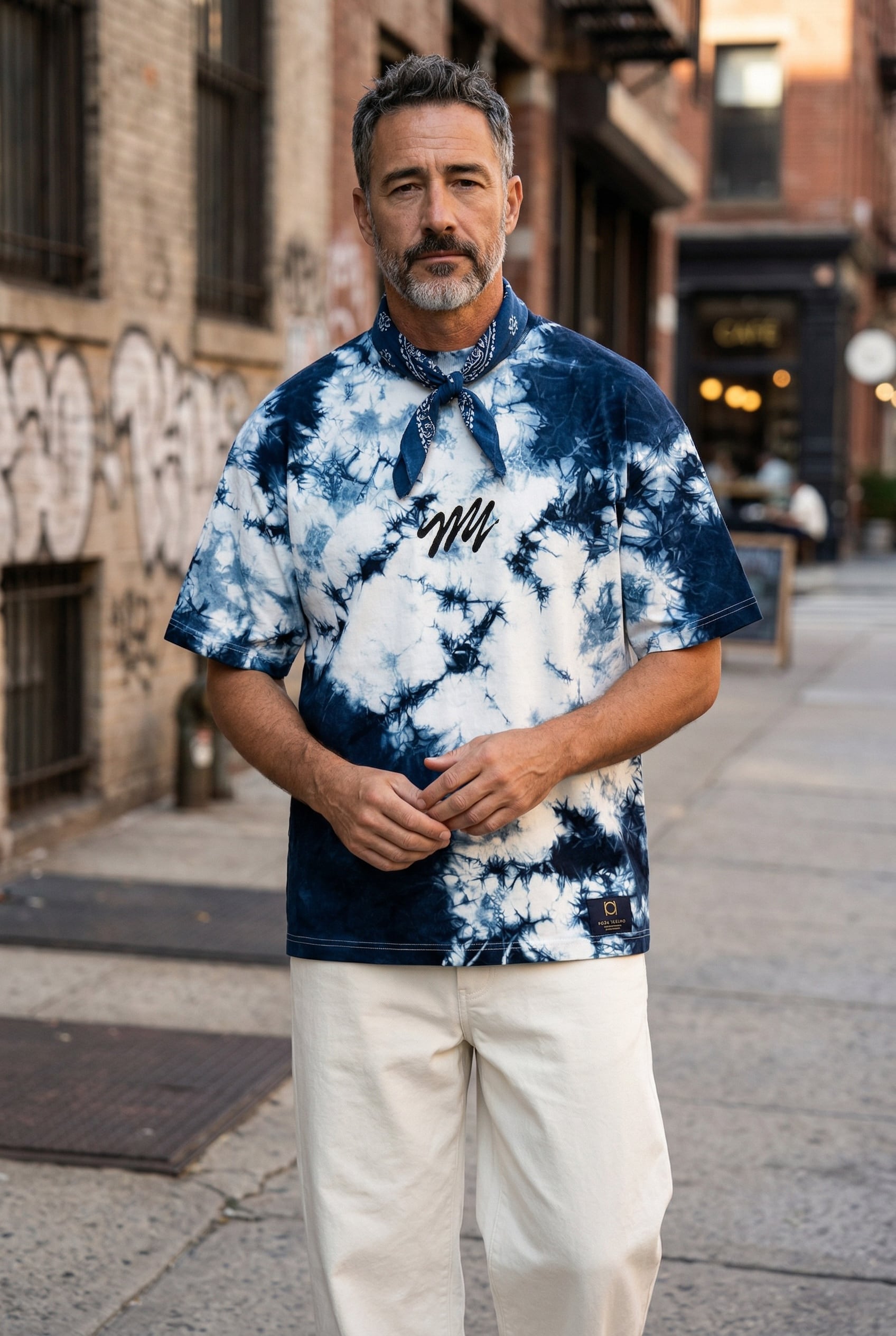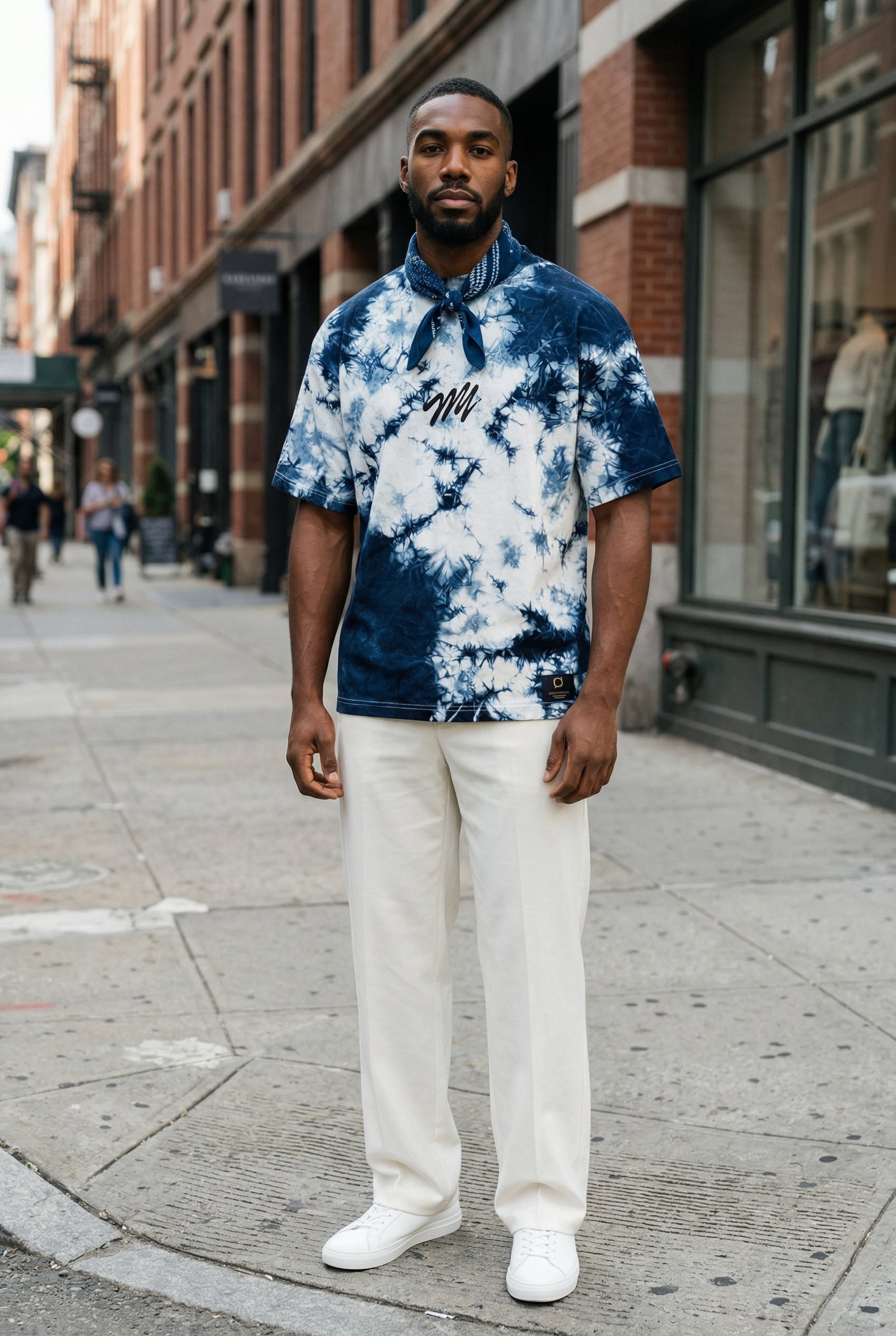 ※1点1点丁寧に手染めにて染色しているため、全てのアイテムの柄が異なります(白と藍の比率は1点ずつ異なり、色合いも1点1点少々異なります)。手染めならではの世界に1着の質感をお楽しみださい。