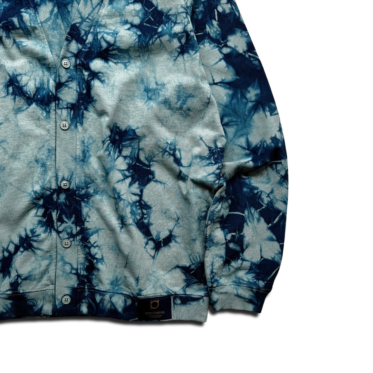 藍染めにて全体に細かい柄が入るように染色をしたコットンカーディガン。
