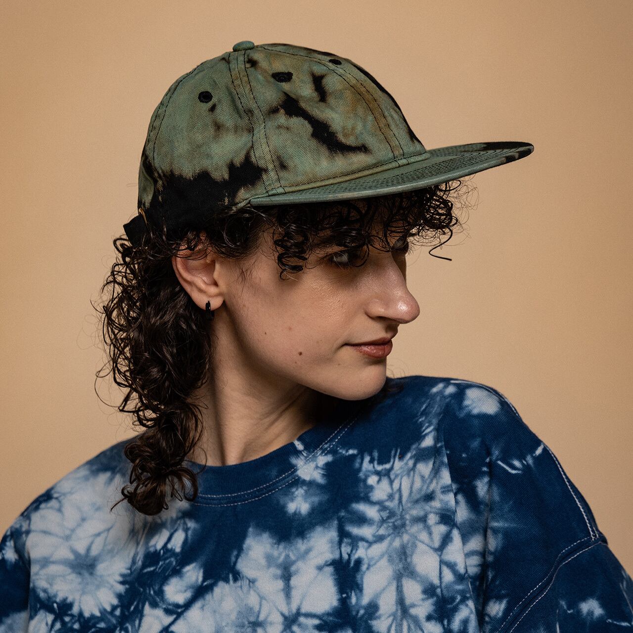 KODAI YASUNO独自のブリーチと染色を組み合わせて制作したキャップ。